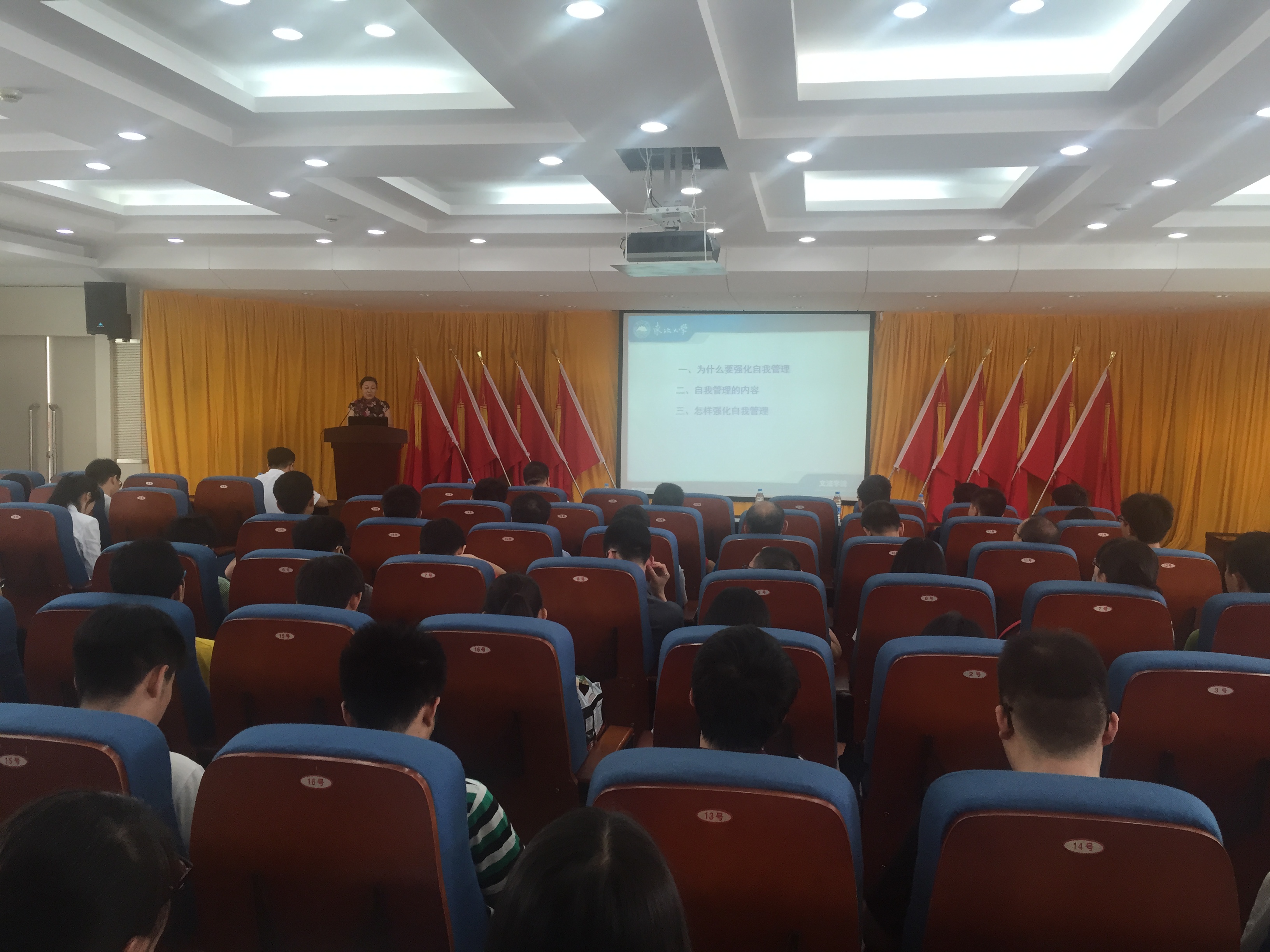 孙萍教授从为什么强化自我管理、自我管理的内容、怎样强化自我管理三个方面解读了做合格党员的必要性和重要性。孙萍指出,我国正处在实现“两个一百年”奋斗目标、实现中华民族伟大复兴的中国梦的关键时期,“两学一做”学习教育实践是深化党内教育的又一次重要实践,做合格党员就要彰显政治本色、遵守党的政治纪律和政治规矩、践行理想信念。贺翔强调,广大师生党员要坚持把思想建设放在首位,紧跟党中央的步伐,积极参加教育活动淬炼党性、锻造品格,确保学有效果、做有成效,在学院发展中起先锋模范作用。