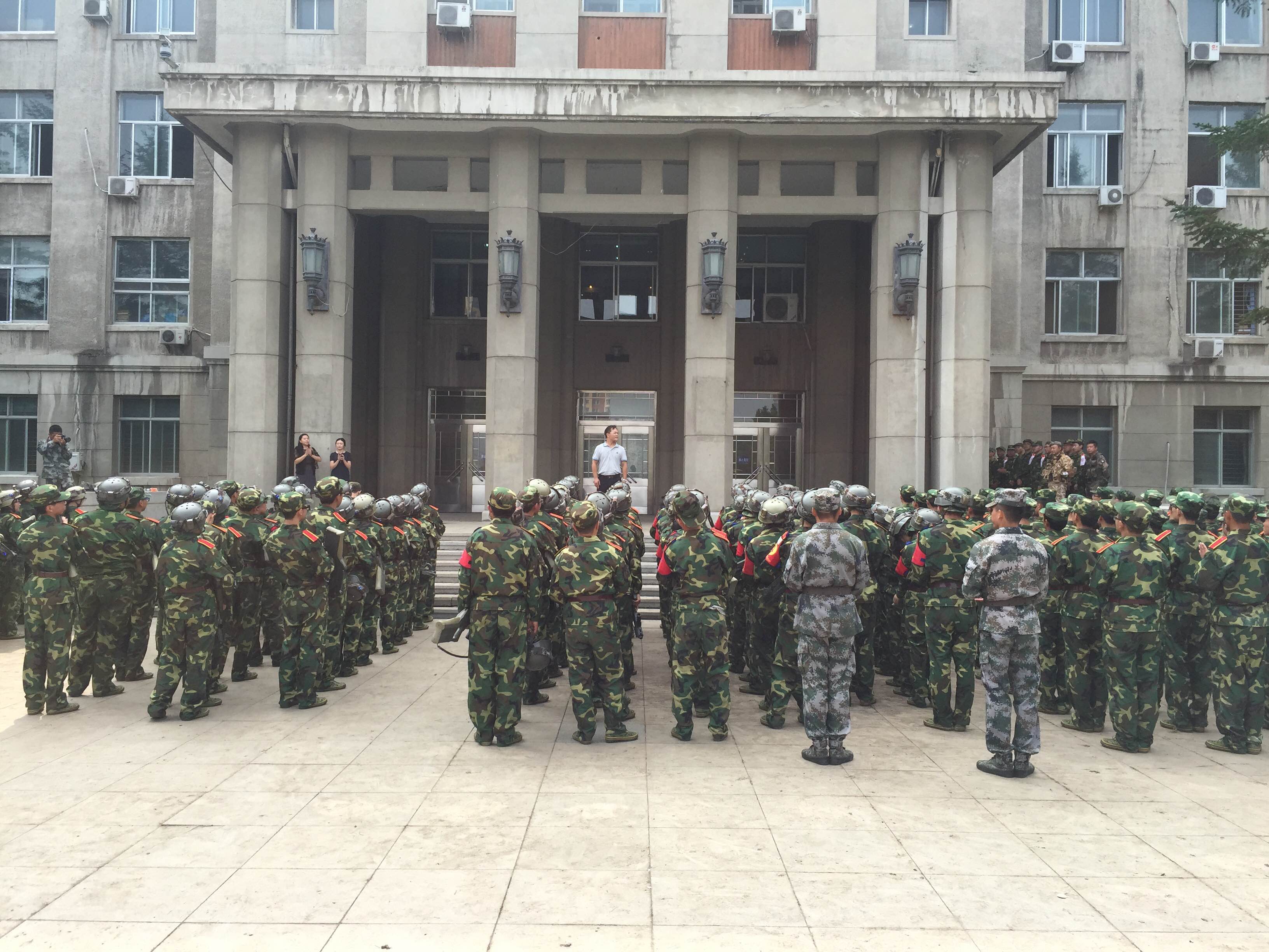 9月14日上午,学院党委副书记兼副院长贺翔带领学生工作办公室的学生工作干部,到军训现场看望正在训练的2015级394名参训学生,并慰问承训教官。