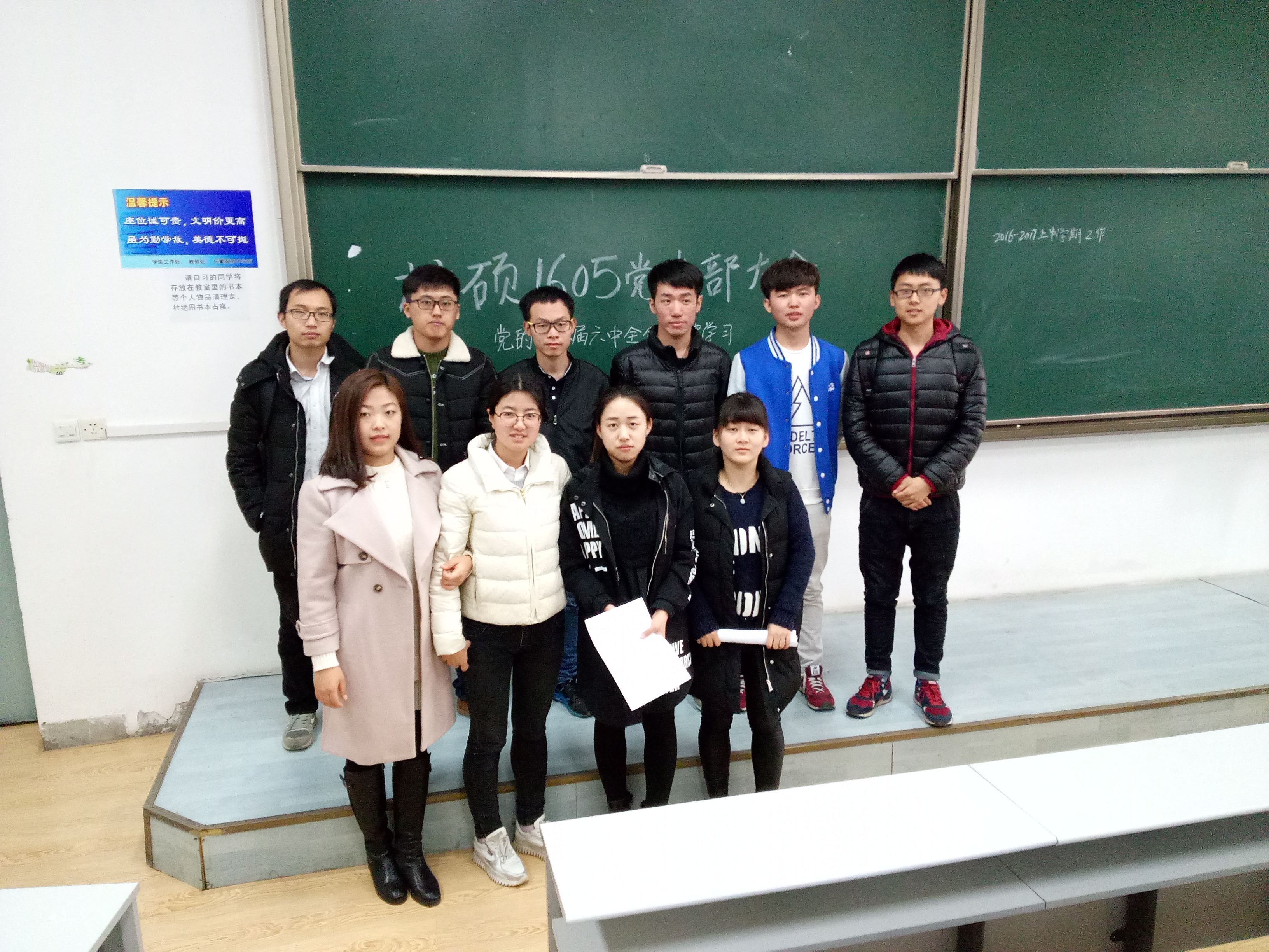 为使同学们紧跟时代步伐,了解党和国家大事,3月20日,材硕1605党支部于机电馆102举办党员学习十八届六中全会精神等基本知识的学习活动,本支部12名党员积极参与其中。