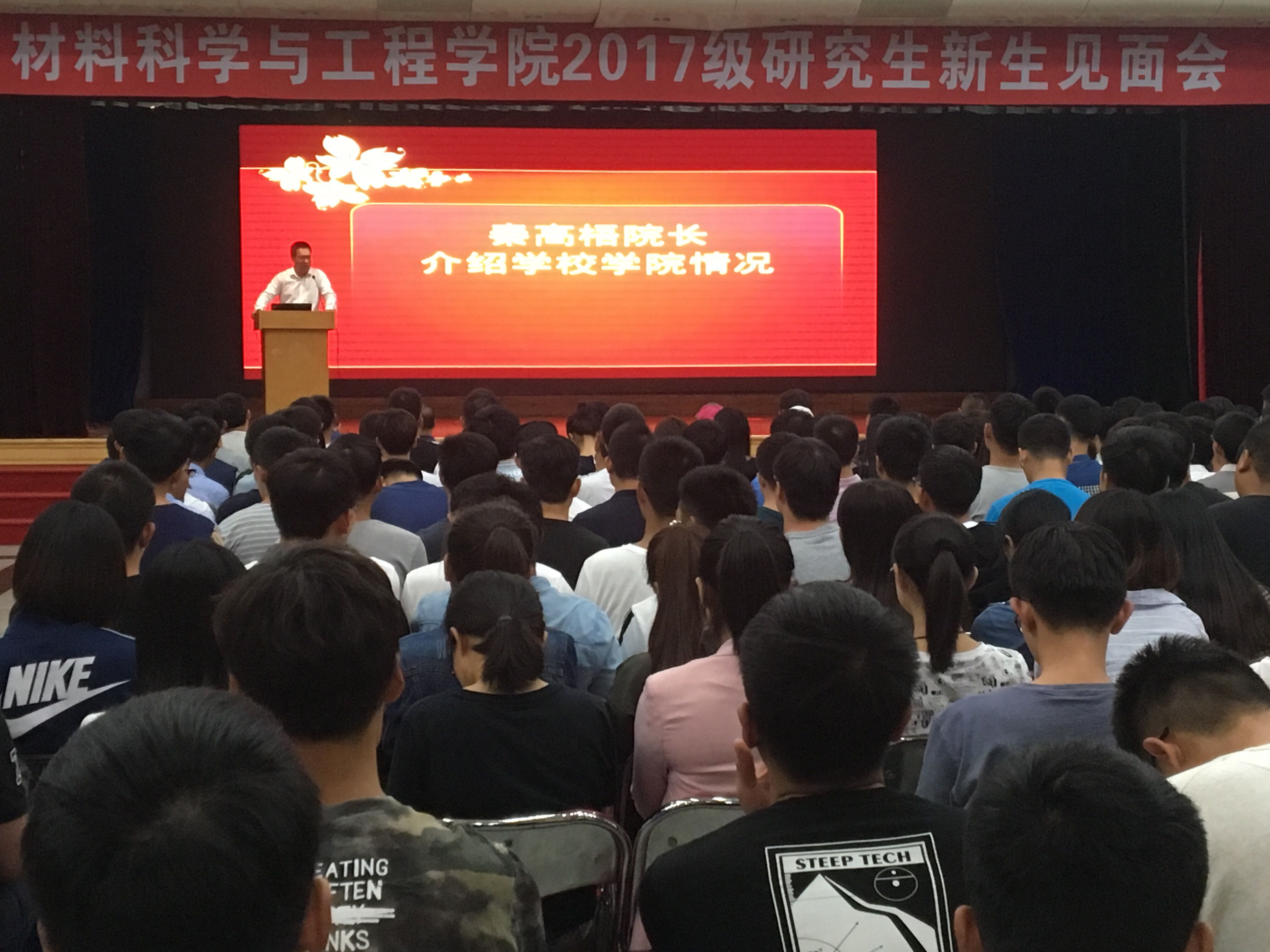 8月30日,材料学院在大活多功能厅举行2017级研究生新生见面会。材料学院院长秦高梧,副院长赵志浩,党委副书记兼副院长贺翔、教学办副主任王大海、团委书记孙巍巍以及全体2017级博士、硕士研究生参加本次见面会。
