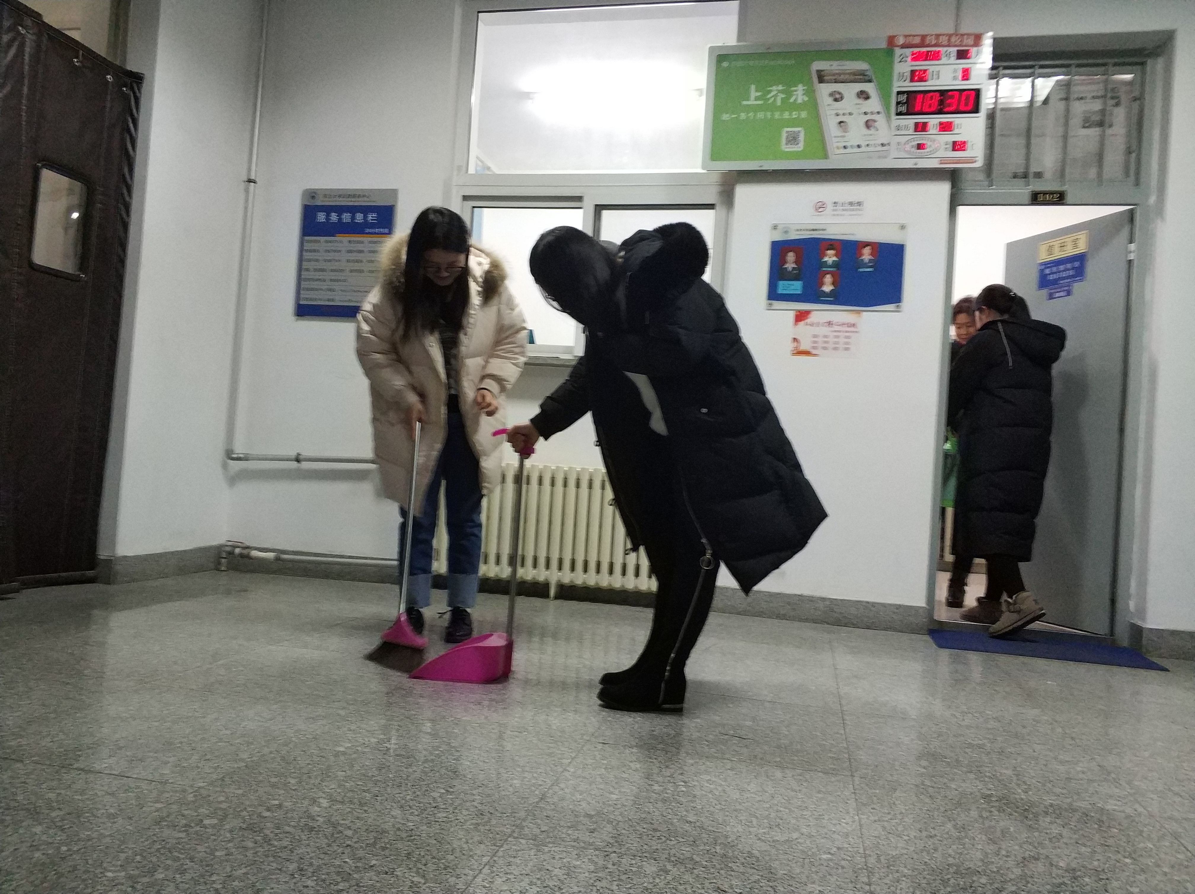 在本次活动中,大家积极配合、干劲十足,发扬了我党艰苦奋斗,一往无前的精神,帮助校工及宿舍管理人员清扫了水房、厕所以及一楼大厅等区域,给终年为学生们服务的工作人员减轻了负担,并得到了她们由衷的赞美。活动后,同学们纷纷表示体会到了劳动人民的不易,她们用高度的责任心和敬业情操,在自己平凡的岗位上挥洒着辛劳和汗水,值得去学习。