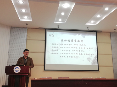 张璐从新闻学专业基础知识和特点出发,向同学们讲解了通讯稿写作、摄影和PPT制作的技巧;围绕新媒体宣传工作如何开展谈了个人看法;结合自身经历分享学生干部和宣传工作心得体会;并提出了说明白话、看明白事、做明白人的希望。