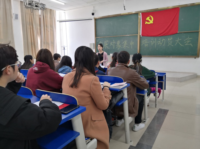 为全面加强党员发展对象的教育、培训和考察,进一步提升发展对象党性修养,2018年3月29日中午,材料科学与工程学院于大成教学馆105教室举办了2018年第一期发展对象入党前集中培训动员会。本期发展对象及部分支部书记代表参加,会议由材料学院党委组织员商淼主持。