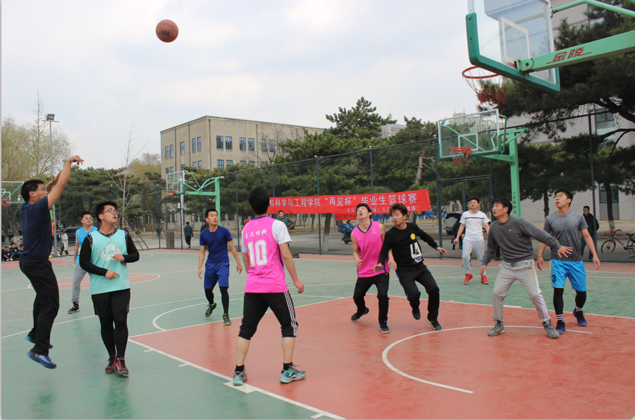 2018年4月8日中午12点,东北大学材料科学与工程学院在综合楼前东侧篮球场举办了“再见杯”材料科学与工程学院2018届本科毕业生篮球决赛,学院党委副书记兼副院长贺翔,学生工作办公室的老师和学院同学百余人来到现场观看了本次比赛。