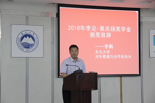 对外联络与合作处处长李鹤代表东北大学进行颁奖致辞,他很欣赏学院对材料科学基础课程的重视以及同学学习专业课的积极性。他说,材料的莘莘学子应不负学校、学院、老师、学长的殷切期望,学以致用,将理论与实践相结合,以一个工程师的标准要求自己。除此之外,作为东大学子应该保持一种意识——一日在东大,终身东大人,希望每一位未来校友在取得成功之际能想起母校并回馈母校,让东北大学以同学们为荣。