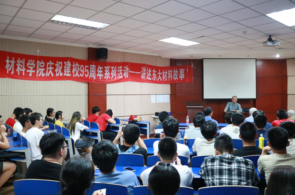 6月13日下午2时30分,材料学院成功举办了庆祝建校95周年系列活动之讲述东大材料故事。本次活动由原材料与冶金学院第一任院长郝士明主讲,院关工委委员刘景荣、朱殿强、钱存富以及团委书记孙巍巍出席了本次活动。