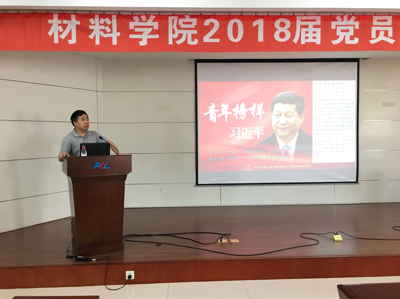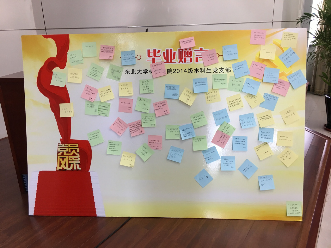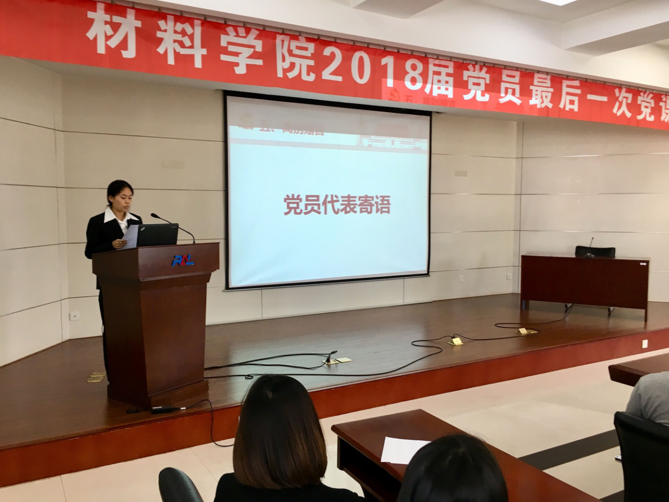 会议伊始,李潇翔对材料学院2014级本科生党支部的基本情况以及建设情况进行详细介绍。随后,党委书记张玉宝以“青年榜样---习近平”为切入点为材料学院2014级本科生党员讲述了最后一次党课,从知青岁月到信仰坚定,用详实的实例来鼓励党支部的学生坚定理想信念,敢于为梦想付出,言辞间寄托了对党员们的殷切期盼,张玉宝希望即将毕业的支部成员能够历世成才,不忘初心。他指出,由学生成长为校友,要更好的服务于社会,报效于祖国,要时刻不忘东大人更好的为学校、为学院发挥自己的力量。在毕业墙的环节中,由支部党员代表、全体支部成员纷纷送上毕业留言,抒发对学校、学院的美好祝福以及对自己的未来期望。最后,全体党员重温入党誓词,本次大会圆满结束。