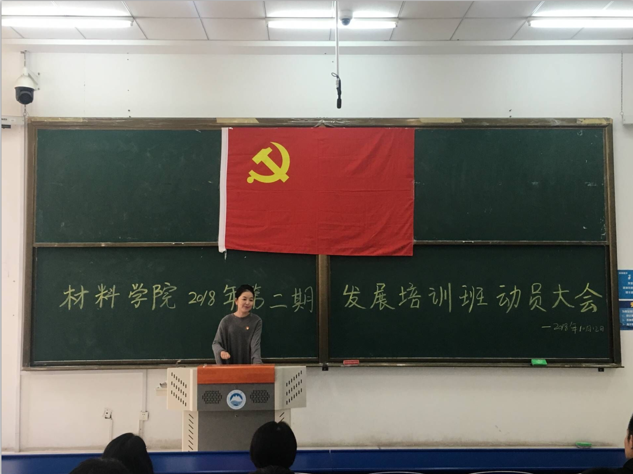 为加强材料学院党支部建设,并向我党注入新鲜血液,10月12日中午,2018年第二期党员发展培训班动员大会在大成教学馆105室成功举行。材料学院党委组织员商淼主持会议,33名党员发展对象参加动员大会。