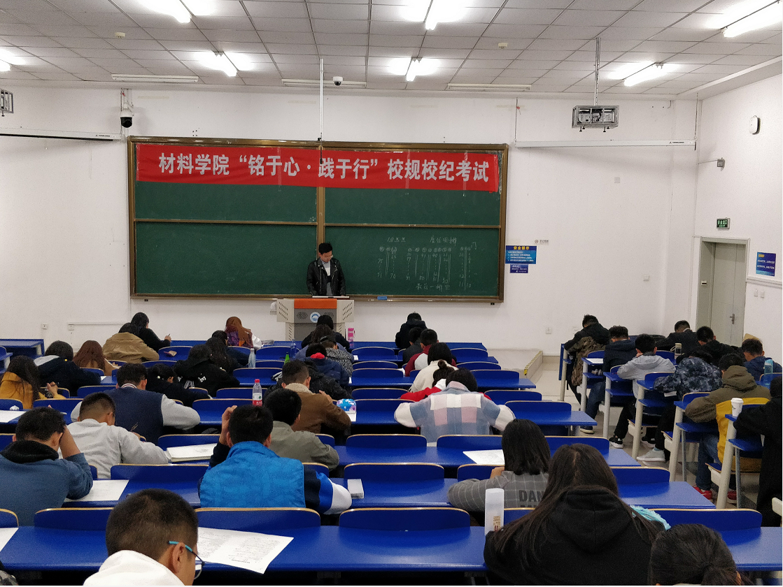 10月10日中午,由材料学院学生工作办公室主办、材料学院学生会学生服务中心学习部承办的“材料学院“铭于心,践于行”——校规校纪考试”在大成教学馆圆满结束,来自2018级的15个班级共计225名学生参与了本次考试。