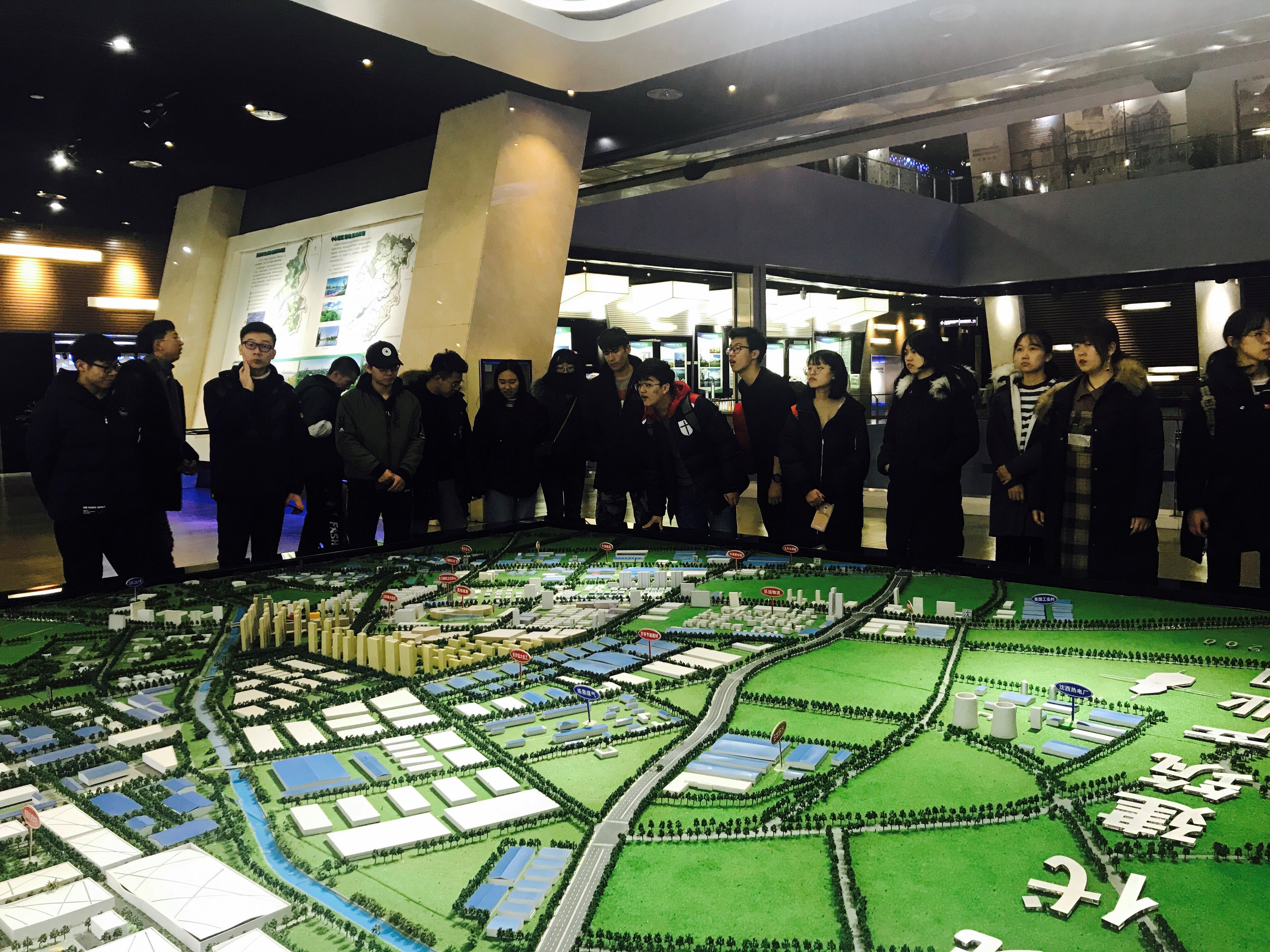 参观伊始,城市规划馆讲解员从历史、地理结构、发展战略规划、工业发展进程以及习近平总书记对沈阳规划战略的指示等方面为同学们进行了全面而详实的介绍讲解。围绕沈阳创新方向与转型的目标及着力点,讲解员带领同学们观看了介绍沈阳目前发展状况及未来发展动向的宣传片。按照各区规划,讲解员向同学们介绍了沈阳城区的历史特点和发展特色,并结合自身经历,讲述沈阳近年来的巨大变化,及城市发展对市民居住的影响。