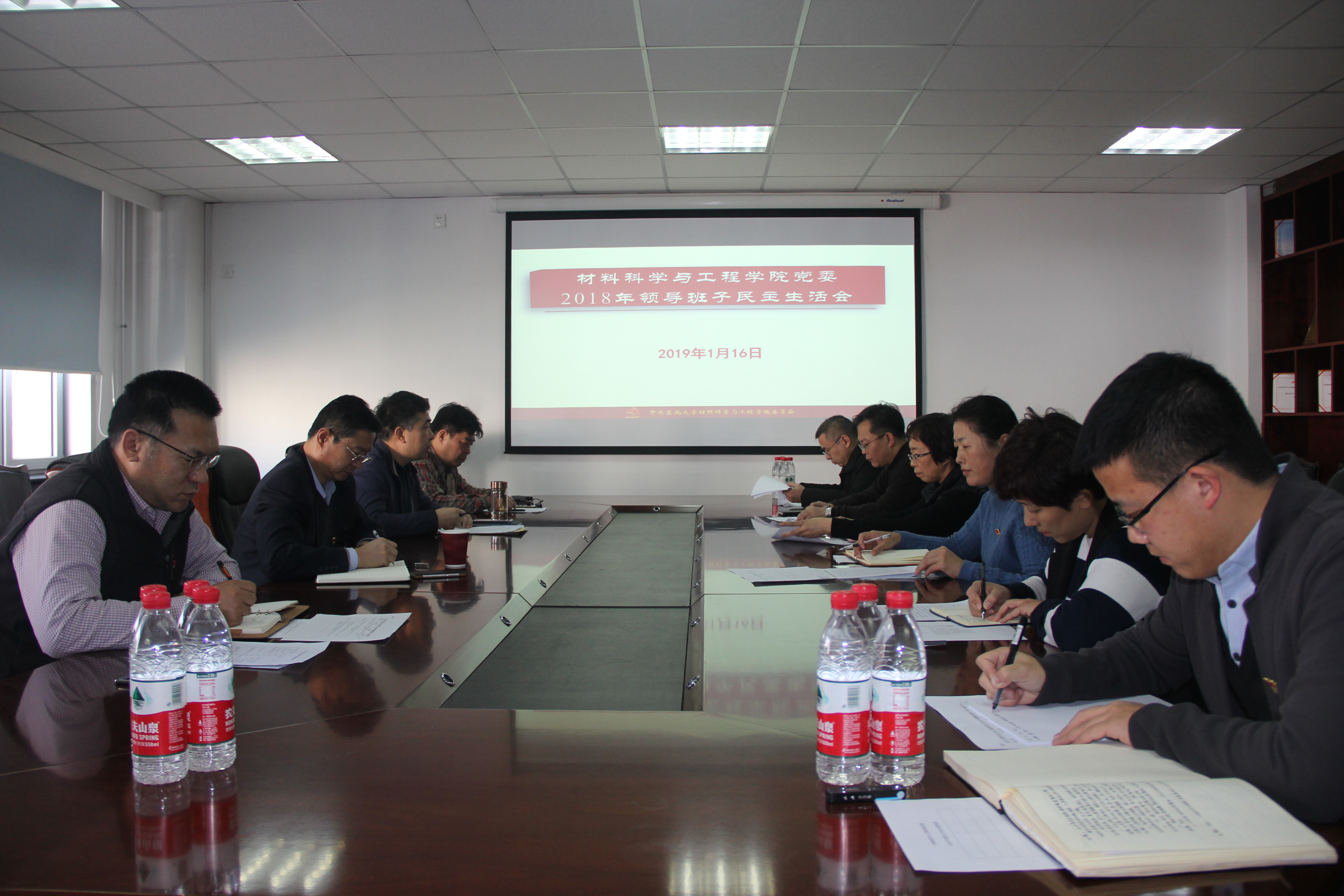 按照东北大学党委《关于认真开好我校2018年度处级以上党员领导干部民主生活会的通知》要求,材料科学与工程学院于1月16日13:00至19:30,在知行楼424会议室召开了学院2018年度领导班子民主生活会。学院领导班子8名同志(其中非党员领导干部1名)全部参加了民主生活会,副校长徐峰参加了本次会议,会议由学院党委书记张玉宝主持。