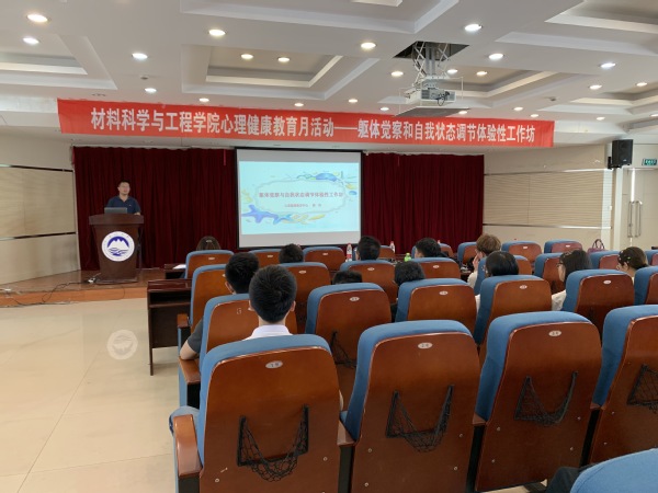 2019年5月29日中午,材料学院在知行楼634室举办心理健康教育月活动——躯体察觉和自我状态调节体验性工作坊,东北大学心理健康教育中心主任陈阳担任主讲嘉宾。材料学院党委副书记兼副院长贺翔、学生工作干部以及学院学生心理委员参加了此次活动。