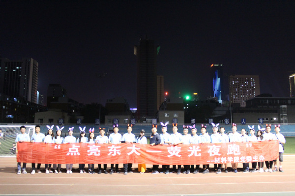 为进一步发扬五四精神、营造积极向上的校园文化氛围、增强学生身体素质、放飞青春梦想,激励东大学子自觉担负起时代赋予的光荣使命,汇聚起拥抱新时代、奋进新时代的磅礴青春力量。5月27日晚,材料学院党委在五四体育场内举办了以“点亮东大”为主题的荧光夜跑活动,材料学院党委组织员商淼、学办副主任董磊、办公室副主任关录奎、全体学生党支部书记及200余名党员、积极分子、申请人参加本次活动。