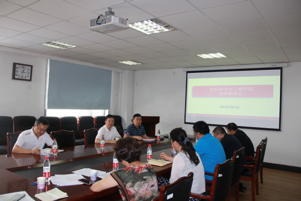 8月2号,材料科学与工程学院党政联席会在知行楼424会议室召开,副校长徐峰、学院领导班子出席会议,会议由学院党委书记张玉宝主持。