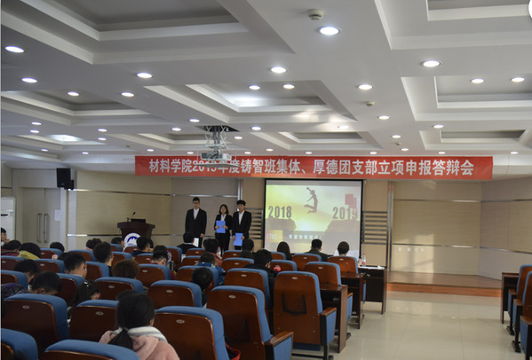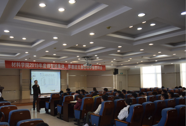 为引领广大学生自觉践行“厚德为料,铸智成材”的院训精神,全力打造并推动材料学院铸智班集体和厚德团支部 “一体两翼、双轨发展”,增强班团的凝聚力和战斗力,培养和激发学生的集体意识,更好实现班团的教育功能,使班团建设成为我院加强大学生思想政治教育工作的有效载体和重要途径,促进学生全面发展,材料学院于11月20日中午12点30分于知行楼634开展了2019年度铸智班集体、厚德团支部立项申报工作,并举行2018年度荣获最佳方案、特色方案、优秀方案的班级结项验收工作。材料学院党委副书记兼副院长贺翔、学生工作办公室全体老师出席答辩会,全院20个班级参加了答辩会。