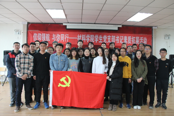 为加强材料学院学生党支部书记队伍的素质教育,提升基层党支部书记的党性修养与业务能力,12月3日下午,材料学院学生党总支于大学生活动中心300教室开展以“信仰领航,与你同行”为主题的素质拓展活动,材料学院党委组织员商淼及全体学生党支部书记参加本次活动。