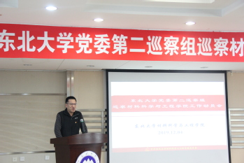 2019年12月4日下午,东北大学党委2019年第二轮巡察第二巡察组巡察材料科学与工程学院工作动员会,在知行楼634会议室召开,校党委副书记、纪委书记、党委巡察工作领导小组副组长杨明同志,第二巡察组全体成员和巡察办相关人员出席会议,材料学院领导班子全体成员、党委委员、分工会主席、党支部书记、基层学术组织负责人、教授与骨干教师代表、教代会代表、民主党派(无党派人士)代表、科级干部、青年教师代表、普通教工代表、学生代表等120余人参加动员会。