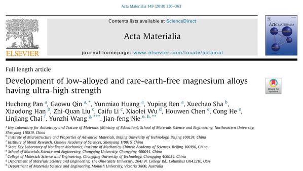 相关成果发表系列论文的第一作者是团队的潘虎成副教授,同时澳大利亚Monash 大学、美国 Ohio 州立大学、中科院金属研究所、西工大凝固国家重点实验室、重庆大学、北京工业大学、中国科学院力学研究所等国内外多家研发机构参与该项工作。相关研究依托东北大学轻合金“兴辽英才计划”重点创新团队,并得到了国家杰出青年基金项目、国家基金委-山西联合重点项目以及科技部“十三五”国家重点研发计划的资助。