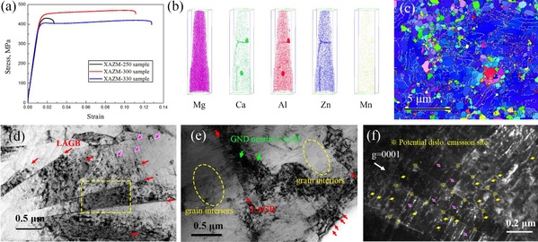 图2. 新型低成本高强塑性Mg-Ca-Al-Zn-Mn合金的组织与性能表征