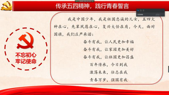 为进一步传承和弘扬五四精神,激励支部成员勇担青春使命,加深对五四运动历史意义和时代价值的认识,5月4日下午,材料学院硕士1901党支部开展以“传承五四精神,践行青春誓言”为主题的线上党日活动,支部全体成员参加此次活动。