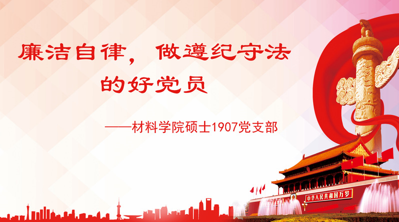 为加强支部的党风廉政教育,提高学生党员的党性修养,5月8日,材料学院硕士1907党支部举办了以“廉洁自律,做遵纪守法的好党员”为主题的党日活动,支部全体成员参加本次活动。