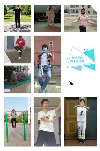 居家战“疫”期间,材料学院制定了《材料科学与工程学院学生体育教育工作方案》、举办了“抗击疫情 强体铸智”学生网络运动会,通过“云竞赛”的方式号召学生利用居家条件、发挥特长、展示运动风采。网络运动会以“每天锻炼一小时,健康工作五十年,幸福生活一辈子”的体育锻炼理念,旨在引导学生形成热爱体育运动的良好习惯,通过体育活动增强体质,促进学生身心健康发展,培养学生高尚品德和坚强的意志品质,实现学生德智体美劳全面发展。