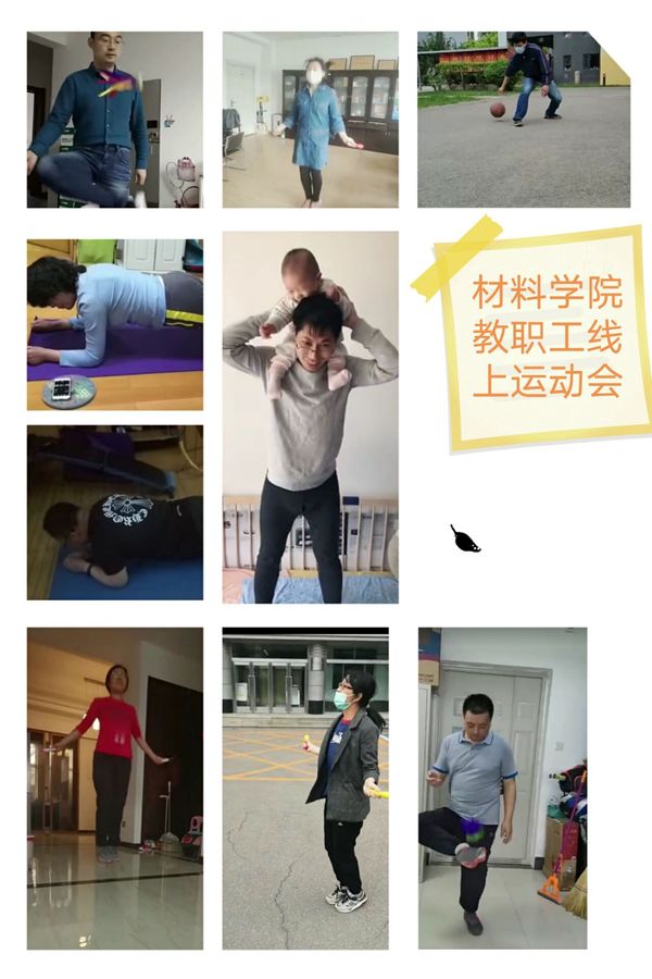 居家战“疫”期间,在校工会的指导下,材料学院党委、工会、团委面向材料学院和RAL国家重点实验室全体教职工,联合举办了“战胜疫情 强体铸智”教职工网络运动会。网络运动会包括“体育达人秀”、“智趣欢乐多”两个系列活动,旨在引导教职工坚持“每天锻炼一小时,健康工作五十年,幸福生活一辈子”的现代体育健康理念。