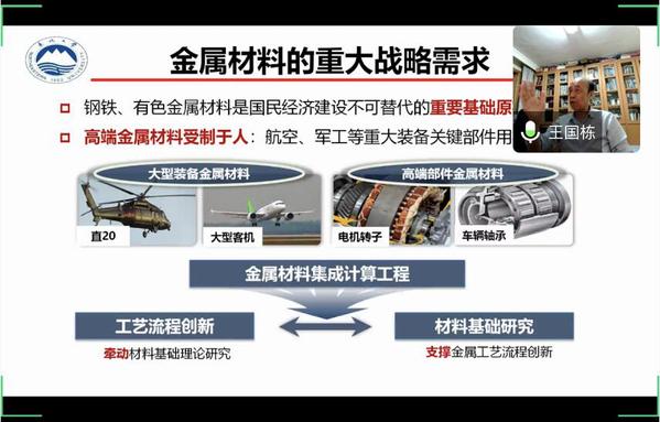 6月8日19:00,材料科学与工程学院举行院士报告会活动。中国工程院院士、东北大学博士生导师王国栋教授通过腾讯会议线上为材料学院大一学生作报告,报告题目为《钢铁工业的绿色化、智能化转型》,材料加工系主任丁桦教授、学院团委书记董磊、2019级辅导员李刚及260余名大一学生参与活动。