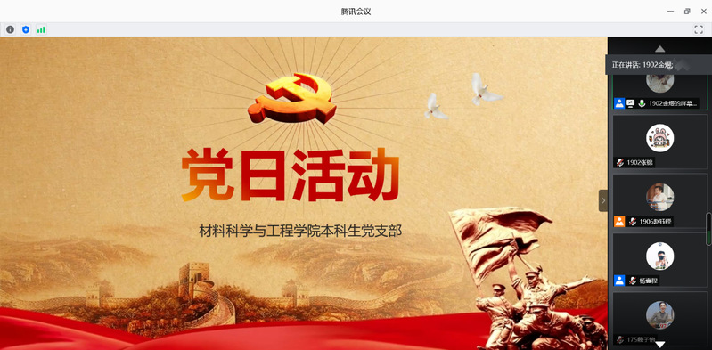 为了进一步调动积极分子学习党指导思想的积极性,提高积极分子的政治理论素养,7月15日晚,材料学院本科生党支部开展了“学习党的思想,感悟党的理论”主题党日活动,党支部书记杨壹程与全体2019级本科生积极分子参加活动。