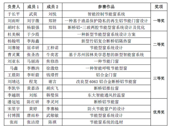 大赛自4月2日启动,经组织宣传报名、线上动员宣讲、七次专题技能培训和交流会、作品征集、评委评审等环节,最终产生一等奖3项、二等奖4项、三等奖6项、优秀作品奖4项,14支参赛作品将代表东北大学参加第三届辽宁省大学生材料成形工艺创意竞赛。其中,于长平等三名同学的作品《智能控制节能窗系统》,刘雨昕等三名同学的作品《一种基于液晶保护隐私的再生铝节能门窗设计》和胡时东等三名同学的作品《断桥铝-三玻两腔节能型窗系统设计及优化》荣获本次竞赛一等奖。