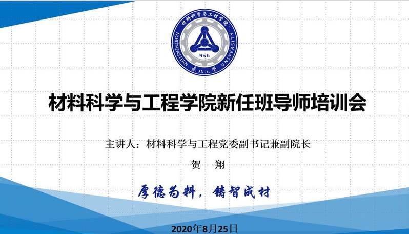 2020年8月25日上午9点—11点,材料科学与工程学院通过腾讯会议召开新任班导师培训会,学院党委书记张玉宝、学院党委副书记兼副院长贺翔、优秀班导师代表张艳辉、学院学生工作办公室主任孙巍巍、学院团委书记董磊以及2020级全体新任班导师、2019级5名新任班导师参加了会议,会议由学生工作办公室副主任姜媛主持。