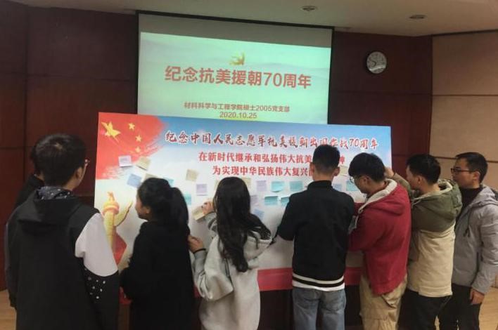 为纪念中国人民志愿军抗美援朝出国作战70周年,发扬先烈们伟大的革命精神和奉献精神,10月25日晚,材料学院硕士2005党支部开展以“致敬抗美援朝,提高党性修养”为主题的党日活动,支部全体党员和入党积极分子参加了此次活动。
