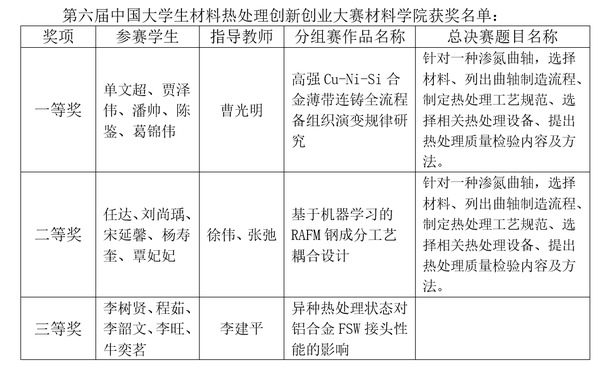 中国大学生材料热处理创新创业大赛是面向高校材料科学与工程及相关专业在校生的全国性竞赛,是我国材料热处理卓越人才培养成果的展示平台。本届大赛以“学以致用、触及巅峰”为主题,主要为了展示材料、热处理与表面改性理论、工艺技术、装备及应用成果,创新热处理技术,致力于培养富有创新精神,勇于投身实践的创新型人才队伍。该项赛事已经成为我国材料热处理卓越人才培养和展示其成就的重要平台,为行业发展、实现制造强国战略人才队伍的建设提供智力支撑。东北大学材料学院立足学科发展和人才培养的需要,以“厚基础、重实践、强能力”为指导思想积极扩大专业类竞赛影响力,认真指导我校材料热处理创新创业大赛的校内选拔赛和国赛队伍培训工作,以此夯实学生专业技能,促进理论水平和实践能力提升。