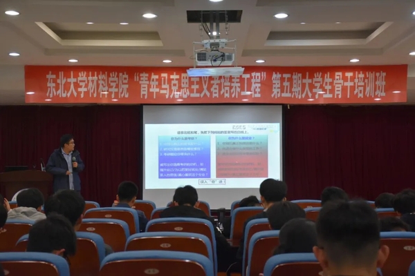 10月30日18:30,东北大学材料学院第五期“青年马克思主义者培养工程”培训班第三课于知行楼634顺利举行,材料学院工会主席、副教授蔡明晖老师担任主讲人,第五期“青马工程”培训班全体学员参与本次讲座。
