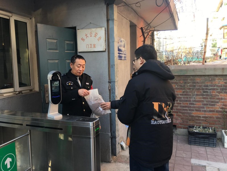 活动当天,材料学院学生党总支组织全体2020级硕士生党支部书记,分为不同的小组前往门卫工作人员的岗位。大家随身携带着送给门卫工作人员的保温、保暖日用品,向他们表达材料学院的点点心意,并慰问坚守在各个岗位处的工作人员。同学们与工作人员融洽交谈,充分认识到了门卫工作的重要性以及工作人员的辛苦付出,同时表达了对工作人员由衷的敬意,门卫工作人员也对学院及各位同学表达了谢意。活动最后,同学们与门卫工作人员共同合影留念。