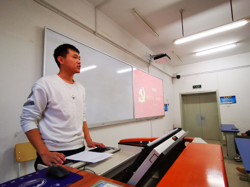 活动伊始,主持人巩政辛用慷慨激昂的开场白,表达对党的向往与崇拜。随后,积极分子金煜带领同学们观看了中国共产党成立99年以来的风雨之路,并邀请周淅、黄名萱两位同学简要阐述了自己入党的初心,使同学们深有感悟。在第三个环节中,积极分子代表李忠豪介绍了《国际歌》的创作背景,并带领同学们一起深情歌唱。活动临近尾声,党务负责人李强对于积极分子们提出希望,他表示中国共产党指引着中华民族艰苦奋斗、筚路蓝缕开辟出一条生机盎然的发展之路,并在改革开放中铸造出新中国的美好蓝图,希望同学们可以不忘初心,砥砺奋进!
