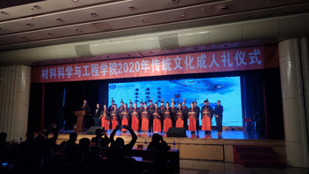 11月30日晚六点半,材料科学与工程学院在学生活动中心多功能厅成功举办2020级传统文化成人礼仪式。材料学院党委书记张玉宝,材料学院党委副书记兼副院长贺翔,材料物理与化学系主任李小武,材料加工系主任丁桦,中法2001班班导师谢红波,中法2004班班导师岳新艳,材料类2006班班导师张元祥,材料类2007班班导师高秀华,材料类2010班班导师祖国胤、张峻嘉,材料类2011班班导师张艳辉以及材料学院学生工作办公室全体老师、2020级400余名同学参加成人礼仪式。