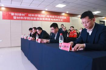 12月23日上午,“聚创铸材”材料学院2021年科技节启动仪式暨材料学院创业实践基地揭牌仪式在东北大学国家大学科技园举行。东北大学科技产业集团总经理牟宏、材料学院党委书记张玉宝、东北大学国家大学科技园总经理姚顺宇、材料学院党委副书记兼副院长贺翔、材料学院团委书记董磊,以及材料学院各竞赛指导教师、双创辅导员,国家大学科技园相关教师,材料学院本硕各班双创委员共70余人出席本次会议。
