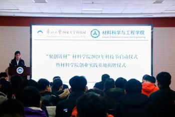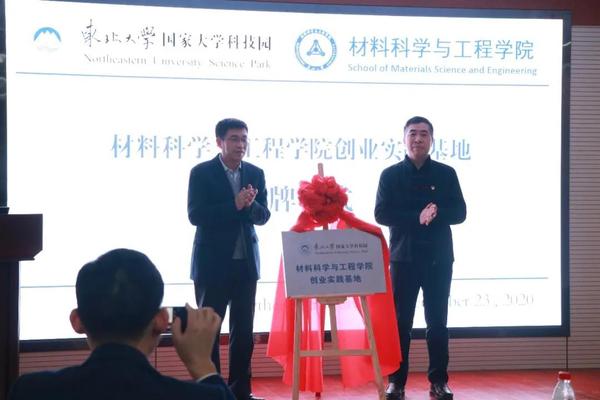 随后,材料学院党委书记张玉宝和东北大学国家大学科技园总经理牟宏共同为“材料科学与工程学院创业实践基地”揭牌。
