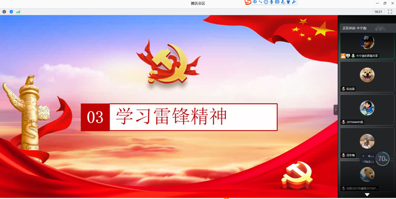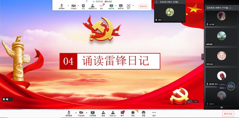活动伊始,支部书记牛宁涛向大家介绍本次活动的主要内容和活动流程。本次活动从雷锋同志的光荣事迹开始,让大家在一个个先进故事中,学习到雷锋全心全意为人民服务的崇高精神。随后,支部成员进行了《雷锋日记》朗诵活动,同学们纷纷发表自己对雷锋精神的理解,并表示要像雷锋那样牢固树立远大理想,作为新时代青年更要把个人追求同国家和民族的前途命运结合起来,把个人的奋斗融入国家富强、民族振兴的历史洪流中去。