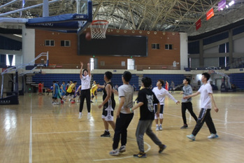 4月1日,参与者于刘长春体育馆篮球场集合,我们很荣幸地邀请到征战cuba赛场的杨泽宇(IFBB运动营养师)、王思洁(2017年cuba东南赛区亚军)、侯森(前东北大学男篮队长)、李冬桦(辽宁省省运会男篮亚军)参与本次活动并作为教练指导同学们进行篮球训练。