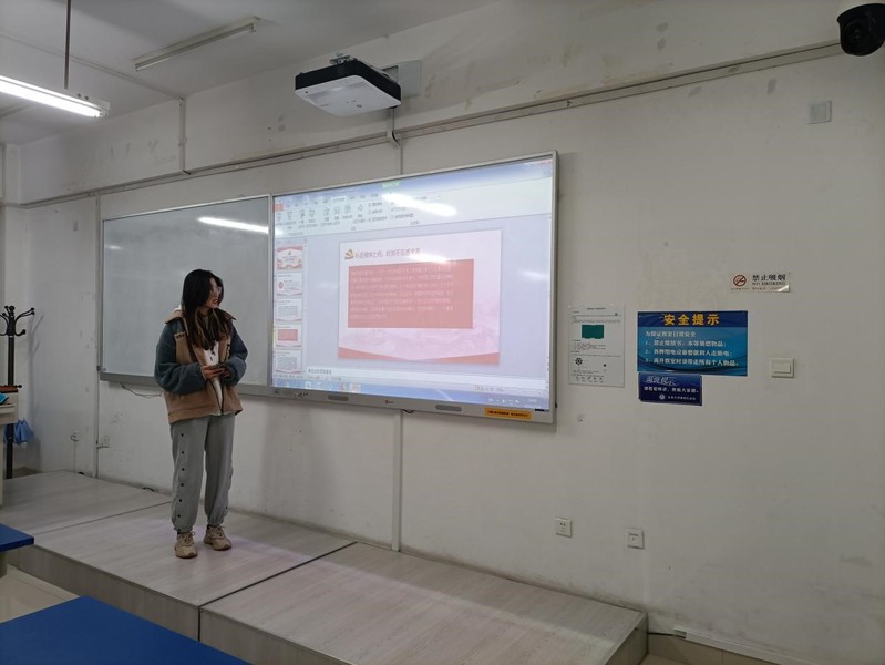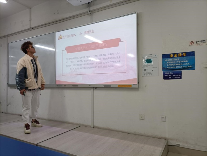 活动伊始,主持人巩政辛以建党100周年为主线,邀请其他三名同学依次从知党史、感党恩、跟党走三个方面全方位、具体化地介绍了中国共产党成立100周年以来走过的坎坷和取得的辉煌。中国共产党从革命中走来,紧紧依靠人民,跨过一道又一道沟坎,取得一个又一个胜利,创造了人类发展史上惊天动地的奇迹。随后积极分子李忠豪从党史人物的感人事迹出发,介绍了老一辈共产党人光辉的事迹,并提倡我们向老一辈共产党人学习艰苦奋斗精神。积极分子王晶锐则通过介绍百年来中国的变化与发展,讲述了中国共产党取得的伟大成果。通过本次学习,同学们纷纷表示被老一辈的共产党人敢闯敢拼的共产党精神所感动,将在今后的学习生活中用实际行动为党旗增添色彩,为祖国的繁荣昌盛贡献自己的力量。