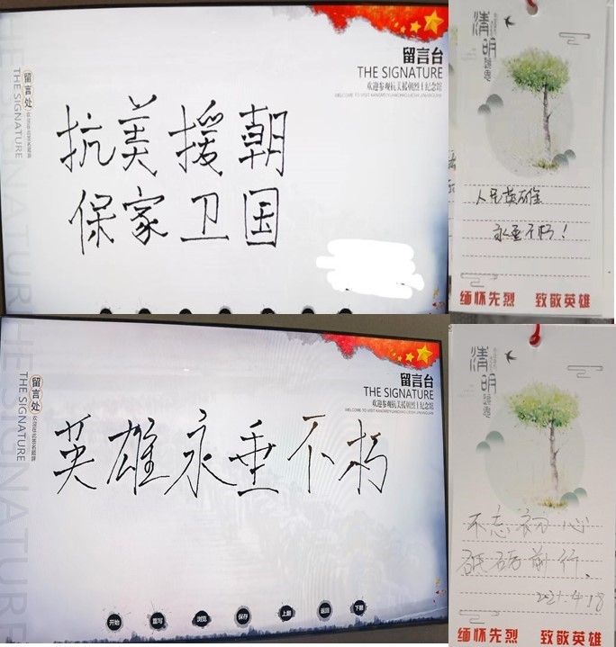 通过此次参观,同学们对先烈们的英雄事迹有了更加深刻的了解,并且对抗美援朝精神有了更加深刻的认识。同时,此次参观坚定了同学们的奋斗目标,激励同学们不断开拓进取、不畏艰险、迎难而上,为新中国的建设添砖加瓦。