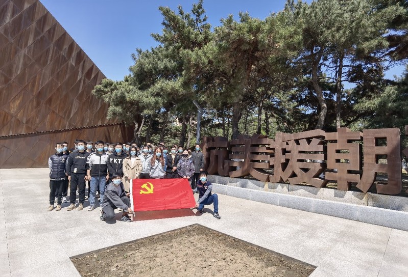 在纪念碑前,硕士2009党支部书记赵龙龙带领全体成员进行默哀仪式,并由支部代表向革命烈士敬献花束,同学们都怀揣深深的敬意向抗美援朝战争中牺牲的英雄战士们默哀悼念。默哀过后,硕士2007党支部书记牛宁涛带领大家重温入党誓词,让同学们进一步增强历史使命感,不断激励自己不畏艰险、奋勇向前。随后,硕士2006党支部书记胡阳带领同学们参观了抗美援朝纪念馆,向同学们详细地介绍了烈士们的英勇事迹,同学们也纷纷在留言板上表达对英烈们的哀悼和致敬,他们表示要学习伟大的抗美援朝精神,积极承担起复兴伟大中国梦的历史重担。