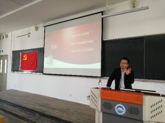 随后,姜玉原为同学们做了本期党校的首次培训,他从中国共产党的性质、最高理想和根本宗旨三个部分展开。在解读中国共产党的性质时,他将中国共产党的性质概括为“一个核心”、“两个先锋”及“三个代表”;在阐释中国共产党的最高理想时,他强调中国共产党的最高理想是实现共产主义,而对于普通人而言,共产主义就是一个美好和谐的社会;在谈到中国共产党的根本宗旨时,他通过讲解抗疫事迹中彰显出来的“生命至上、人民至上”理念,向同学们阐述了中国共产党的宗旨就是全心全意为人民服务。最后,姜玉原以“此生无悔入华夏,共筑时代之伟大”为结束语结束了本场的培训。