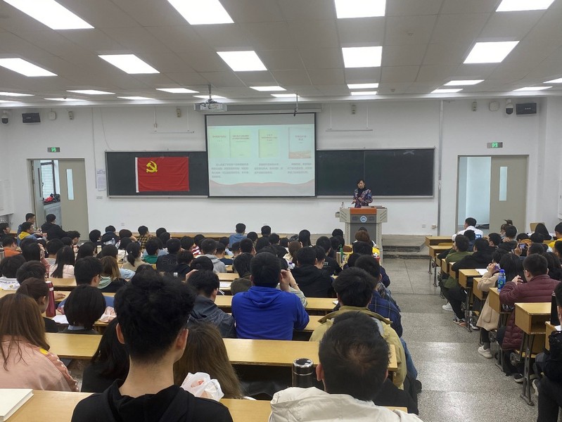 周莉主讲此次培训课程,她从中国共产党的发展历程、人民选择的政党、时代发展的挑战以及共产党员的行动四个部分展开。周莉首先为同学们详细介绍了中国共产党在历史洪流中所经历的惊心动魄的旅程,她从党的历史人物、会议和建设的角度,揭示了党丰功伟绩背后的伟大生命贡献。随后,她讲到人民之所以选择共产党,是因为党始终秉承“信真理、有真人、行真策、怀真情”的理念,她谈到当今时代下中国所面临的危机与挑战,并鼓励同学们要怀揣共产主义理想与信念,紧紧跟随中国共产党的前进步伐,积极投身国家伟大事业的建设中。最后,周莉以习近平总书记的“三牛精神”为结束寄语结束了这场别开生面的思想教育。