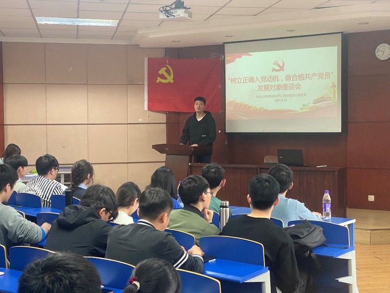 为贯彻落实《中国共产党发展党员工作细则》,进一步检验全体发展对象的阶段性学习成果,帮助发展对象树立正确的入党动机, 4月22日下午,材料学院学生党总支召开题为“树立正确入党动机,做合格共产党员”的发展对象座谈会,材料学院党委组织员商淼、党支部书记代表、优秀学生党员代表和2021年第二期全体发展对象参加此次会议。