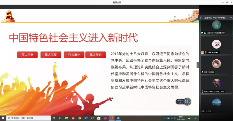 为庆祝建党100周年,持续推进党史学习教育工作,5月20日,材料学院硕士1903党支部线上开展了以“讲党课,学党史,强党性”为主题的主题党课,支部全体成员参加此次活动。