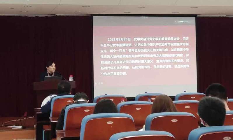 5月26日,材料学院党委邀请东北大学2021年度党史学习教育宣讲团成员、党校副校长、马克思主义学院副教授周莉为广大师生讲授《学百年党史,悟初心使命》专题党课。学院领导班子成员、教职工和学生党支部书记代表、师生党员代表于知行楼634现场学习,部分师生通过腾讯会议在线收看。