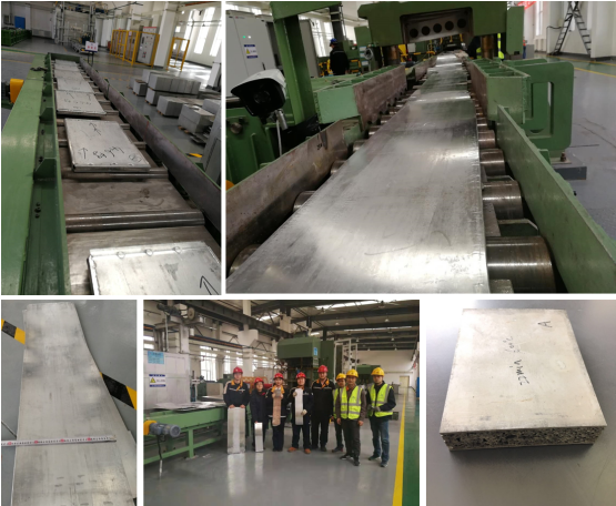 图1 泡沫铝夹心板工程化中试进展及样品实物
